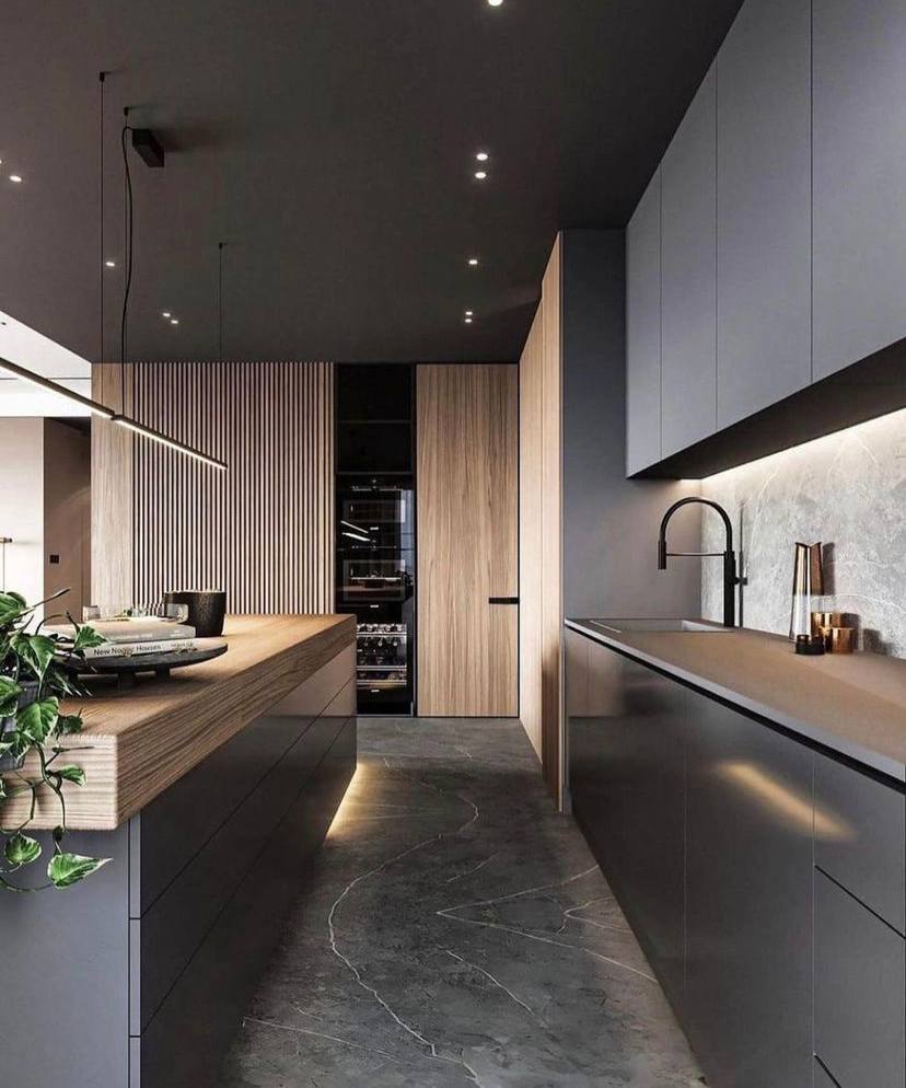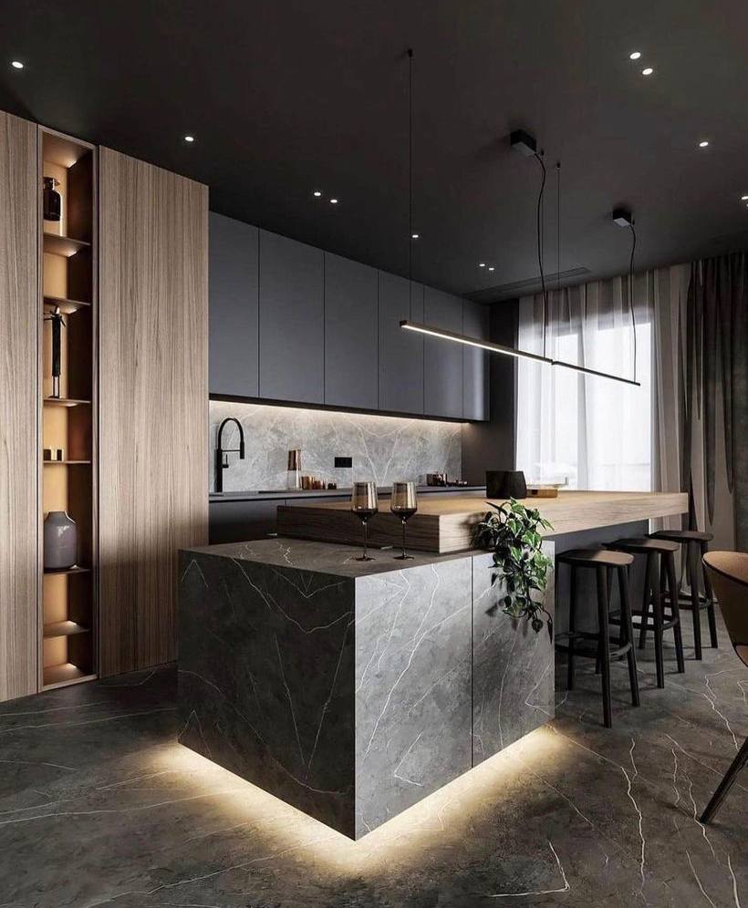 - Обсуждение комфортной планировки и составление плана – например отделка под кирпич, с фартуком или без, освещение точечное из нескольких светильников или с одной люстрой